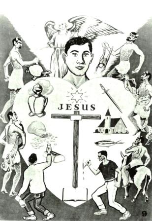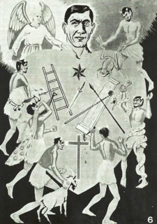 O crente que deixou a vida cristã. Um olho está se fechando e o outro no mundo. Já diminuiu a luz do evangelho e a estrela da consciência está quase apagada. A cruz transformou-se num peso e ainda vai à igreja, não por amor, mas sim para enganar-se como religioso. Está cercado de tentações. O espírito da vaidade (pavão) e imoralidade (bode) procuram entrar. Depois o vício (porco). Então fica nervoso e com raiva (onça). A mentira e inveja (serpente ), bem como o amor ao dinheiro (rã) procuram infiltrar. O demônio esfaqueando o coração, representa aqueles que com deboches ferem o coração do cristão. O anjo tenta mostrar o caminho certo.
